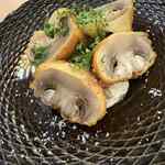 正しい料理名は忘れましたがアボカドに醤油漬けされた卵黄が乗っている料理。 これが美味しい! 日本酒とぴったりで。 ...
