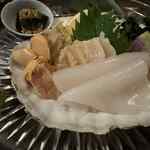和釀良酒まるたけで食べた帆立とイカの刺身。 店主の実家は青森なのですが、実家に帰ったときに食材を仕入れてきました。 津軽そば。 大...