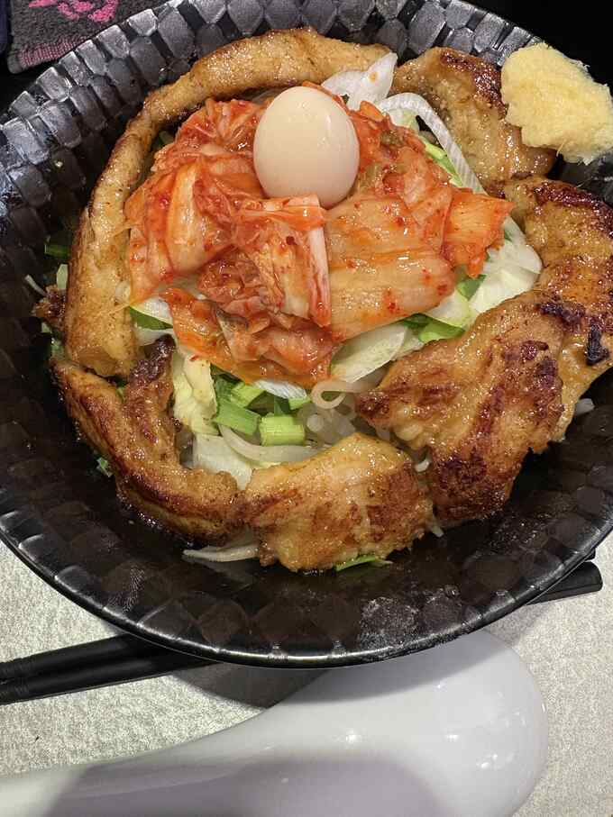 豚トロと野菜が入ってキムチが乗っていてレモン強めのタルタルが別途にあって自由にかけて食べるというもの。